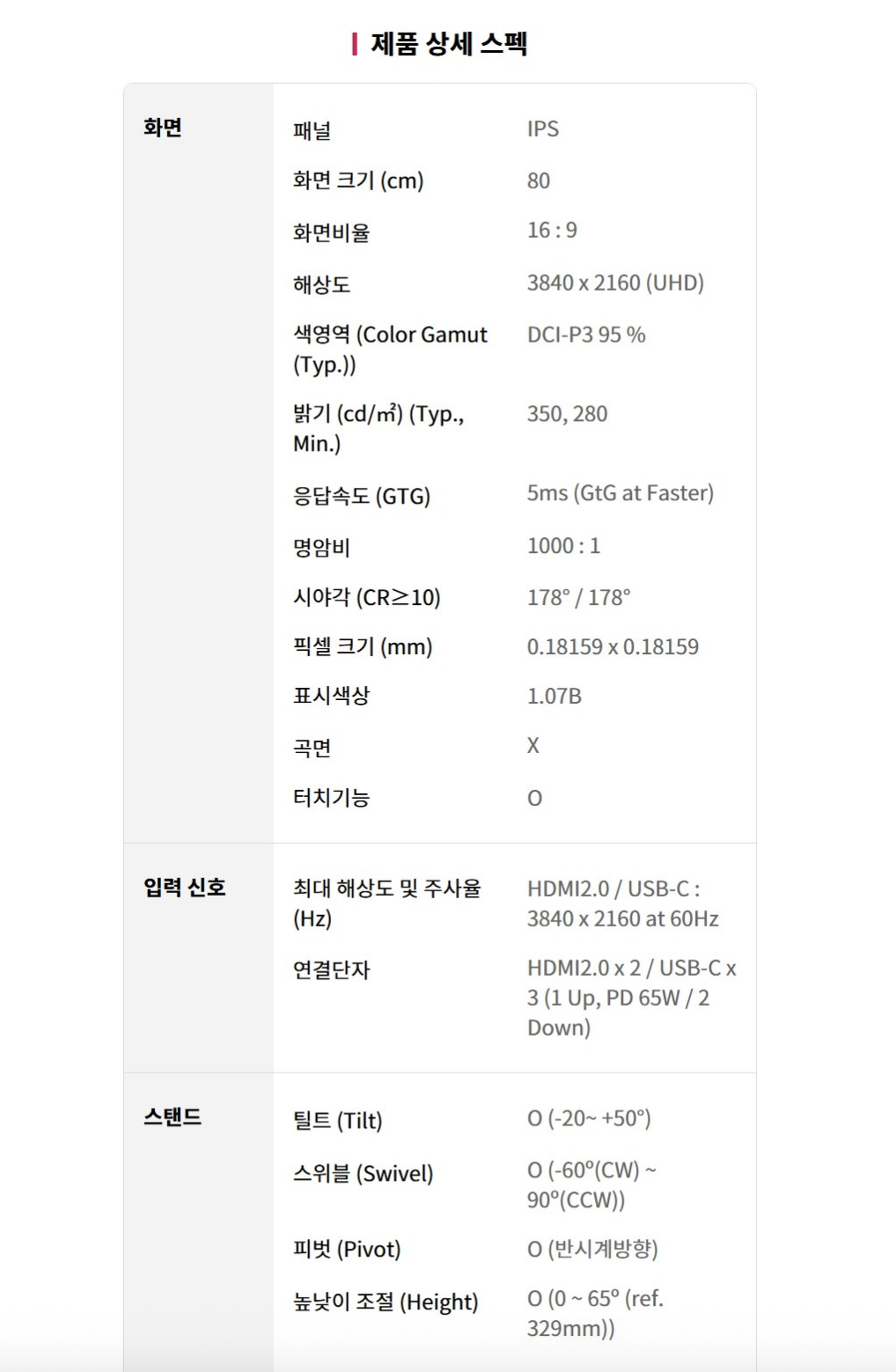 제품 사양