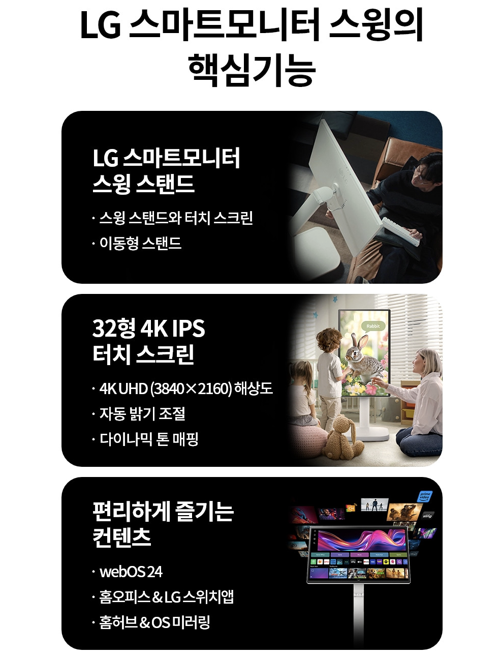 LG 80cm(32인치) 스마트TV 이동식 스윙 스탠드 스탠바이미 삼탠바이미 룸앤티비 4K UHD